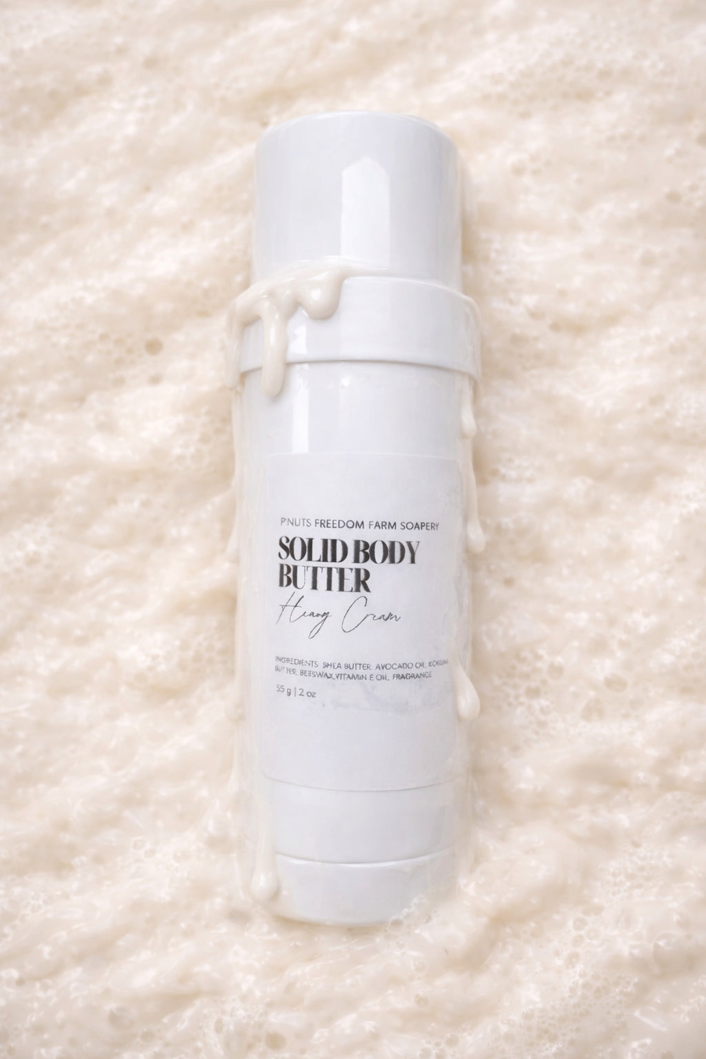 Our solid body butter stick is a skin-loving blend of goat milk, shea butter, almond oil, and vitamin E — packed into a convenient, mess-free twist tube. It melts on contact, gliding smoothly to deeply moisturize even the driest winter skin.